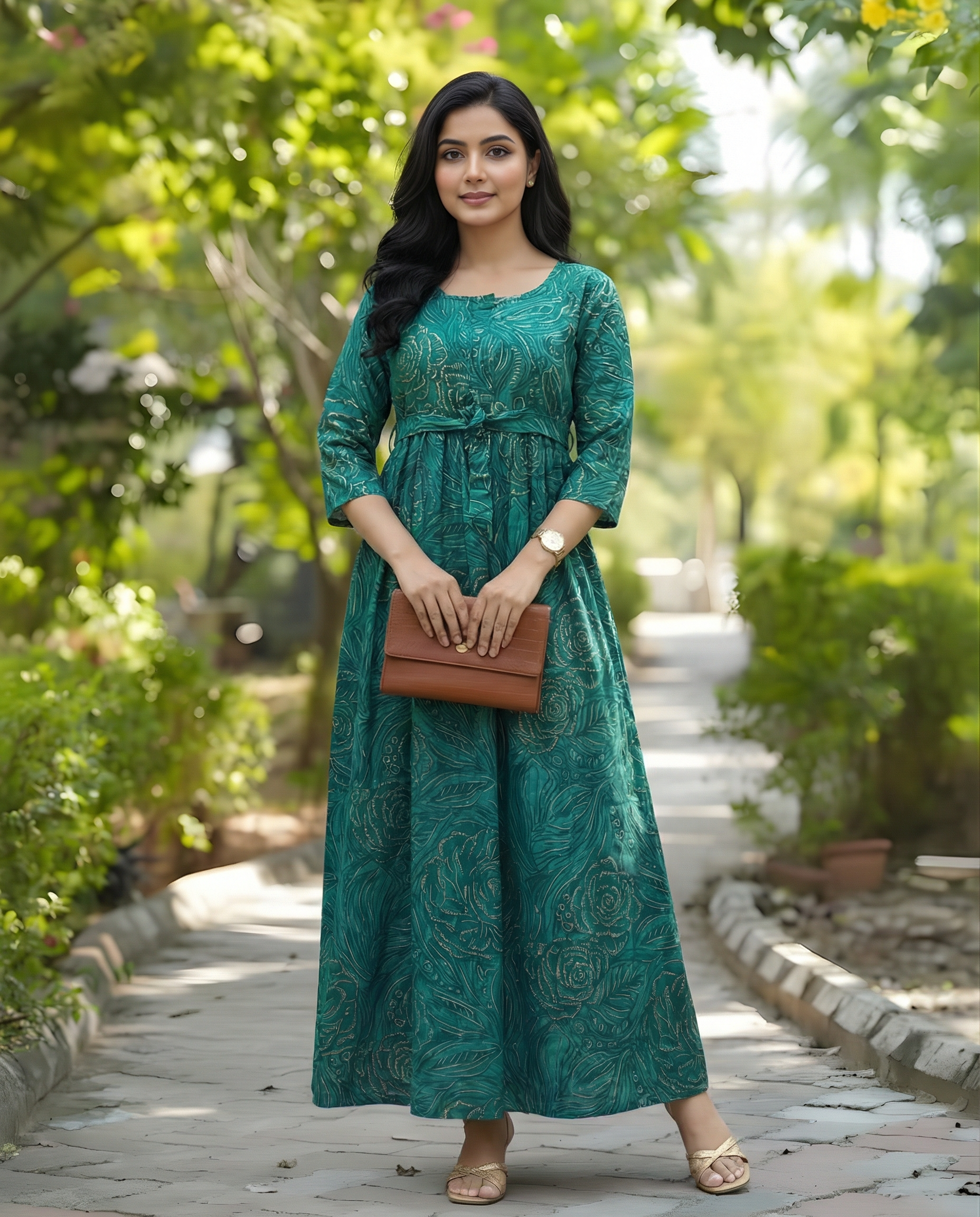 Peacock Blue Rose Gold - Maternity Kurti with Feeding Zips - Soft Rayon