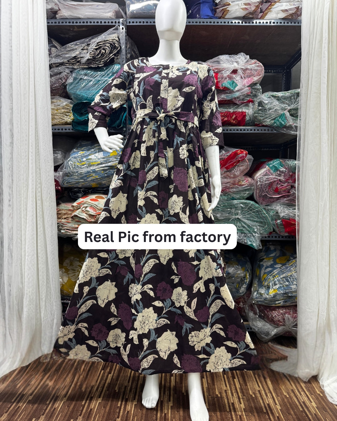 Dark Purple - Mix Flower - Maternity Kurti with Feeding Zips - Cotton Flex - Thicker Fabric