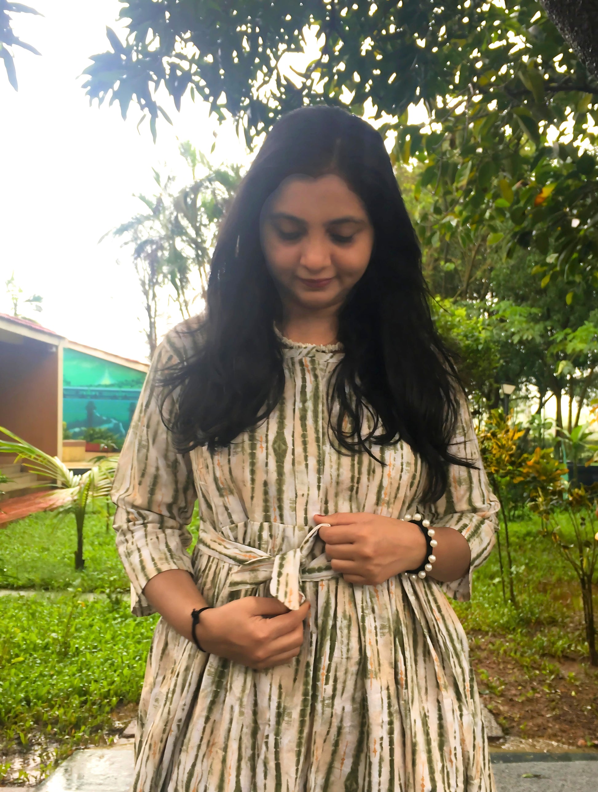 Tie Dye Shibori - Green - Maternity Kurti with Feeding Zips - Cotton Flex - Thicker Fabric