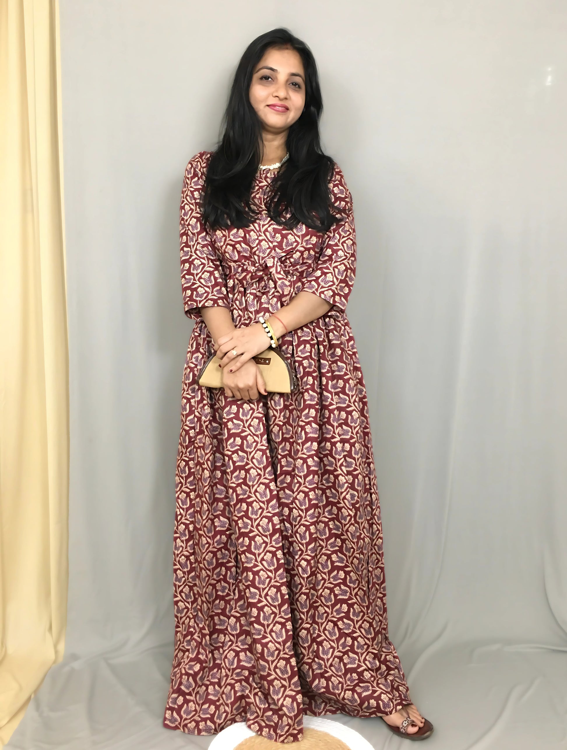 Tulip Flower - Maroon - Maternity Kurti with Feeding Zips - Cotton Flex - Thicker Fabric